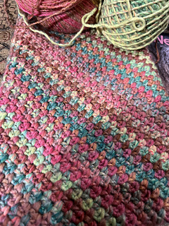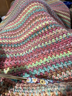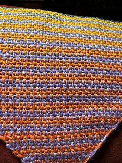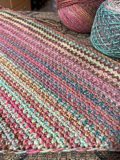 Sweet Darling is a square corner to corner, moss stitch blanket, that can easily adapt itself to any size you want and can be made of any weight yarn with the appropriate sized hook. Yarn choices should be 2 contrasting colorways with long, progressive color changes.
