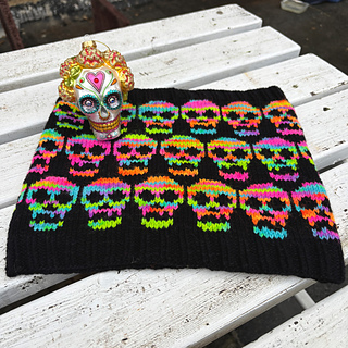 A simple stranded colourwork cowl designed to show off a multicoloured yarn paired with a semi-solid.
