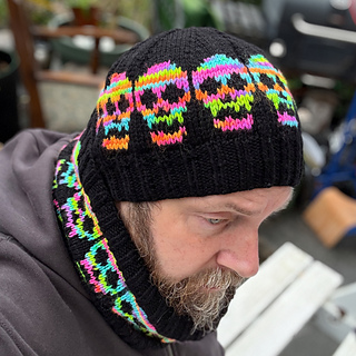 I used 35m of Bona Yarns Big Boy DK in ‘Wild n Wonderful’ (the multi) and 115m of Bona Yarns Big Boy DK in ‘Nightshift’.