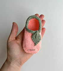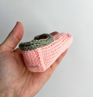 This is a pattern for shorties/slipper socks designed to fit tiny, sweet baby feet in size 0–3 m. They make a perfect gift for newborns or a charming way to use up leftover yarn. The delicate small leaf detail is knitted at the end of an applied I-cord edge, adding a lovely finishing touch.