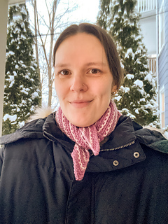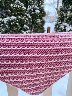 This bandana uses 50g of a main color and 20g of a contrast color to create the wavy bobble-stripes every few rows. The bandana can easily be made into a larger scarf or shawl by continuing the pattern as written until the desired size is reached. A larger bandana will require more yarn.