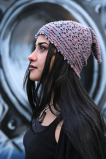 Sweet Winkie is a playful take on a traditional stocking cap. Worked sideways and finished with a picot edge, this design is sure to provide just the right amount of whimsy.