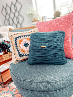 The Sweetcorn Crochet Pillow is a bold, textured 14” square cushion featuring popcorn stitches, stacked double crochets, and beautiful layered colorwork. With strong geometric structure and satisfying stitch rhythm, this intermediate-level crochet pattern creates a striking home décor piece you’ll love showing off.