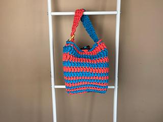 The Swirl Box Project Bag is made with a t-shirt yarn to create a fun and sturdy project bag that can be worn on your wrist so you never have to leave home without a WIP.