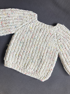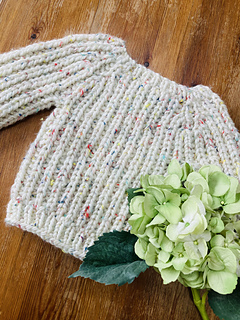 This baby sweater is made on 6 & 8 mm (US 10 & 11) circular needles.