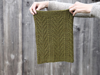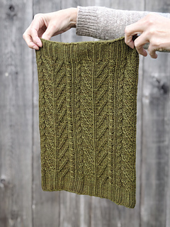 The rhythmic cable repeats make this an engaging and meditative knit, letting the botanical motifs emerge beautifully.