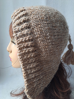 Hood style bonnet/hat pattern for toddlers, children and adult/teens. Tassel and braided pigtail embellishments added. Easily completed in a few evenings.
