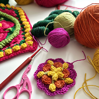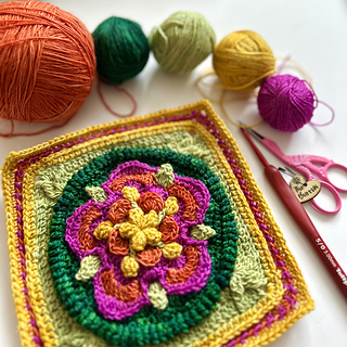 I designed this vibrant, textured square for the October 2025 BAM CAL hosted on Ravelry.