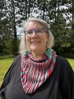 Designed for a single skein of yarn, TATER TOTS BANDANA is a quick-knit project that gets you ready for changing weather—whether the leaves are falling or the trees are budding out. This reversible small shawl shows off variegated colors beautifully, making it a perfect project for that special skein of handspun yarn. This sportweight bandana serves as a great transition weight for the autumn season and beyond. A tidy 2-stitch icord borders the piece, and the finished product is totally reversible! Video links are provided for icord cast-on and bind-off used in this pattern.