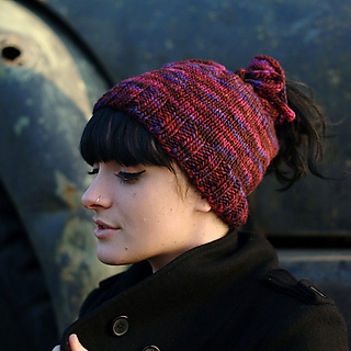 A quick knit Hat, ideal for those with long hair and pony-tails! The drawstring opening can be tightened or opened depending on your hair style for the day.