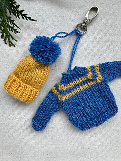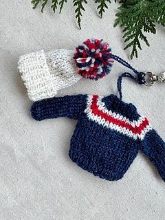 Small in size, big in spirit! Knit the adorable charm-sized sweater and hat in your team’s colors to share the joy of unity and support.
