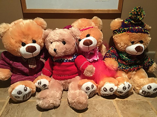 The sweater also has a wide neck band that fits over the bears head without the need for fasteners