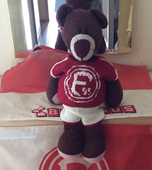 It nearly the Rugby season so here’s a cute little rugby kit for bears. The pattern is for a shirt, shorts, boots/socks all made in double knitting yarn.