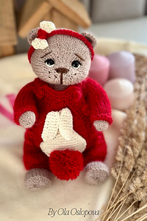The teddy bear knitting pattern was created by Ola Oslopova - OlaKnittedBears.