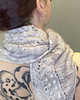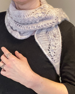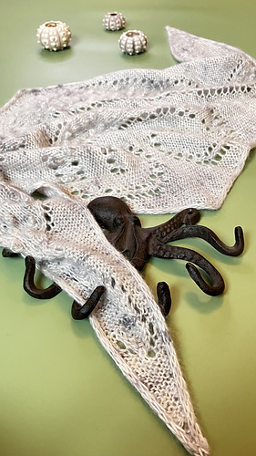 Diamond shaped scarf with side I-cords and tentacle pattern. It is designed especially for Kraken Yarns Fluffy in combination with a tencel fingering yarn.