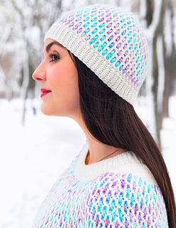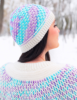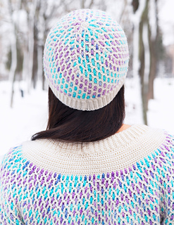 The Tessellation Beanie brings all the beauty of the pullover into a small, satisfying project. Starting at the crown, it’s worked seamlessly in the round with invisible increases that echo the shaping of the Tessellation Pullover’s yoke.