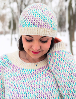 Whether you pair it with its matching sweater or wear it solo as your go-to cold-weather accessory, the Tessellation Beanie adds a touch of handmade refinement to any outfit. And if you can’t get enough of this stitch pattern, why not try the matching Tessellation Pullover next?
