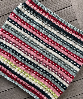 This pattern is designed to be easy to knit because you only ever use 1 colour per round. It’s also designed to use even small amounts of leftovers, as you’ll be picking a new pair of colours each repeat. Guidance is provided for approximate use of each colour per stripe to help you maximize leftover usage.