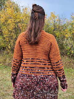 I originally designed this cardigan because I’m the type who cannot stand being cold. I practically live in sweaters all winter long. I wanted something warm and snuggly, but still stylish enough to wear out and about. The slightly oversized fit makes it perfect for cozy layering, while the bead stitch detail adds just the right amount of texture and interest. I first played with this stitch when I designed the Bauble Bandana Cowl, and for this cardigan I gave it a twist: each bead is framed with an extended single crochet, creating the look of little “boxes” lined up across the fabric.
