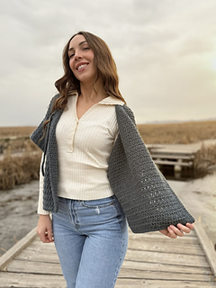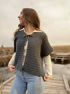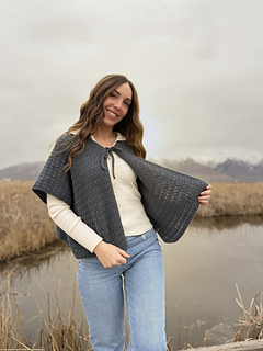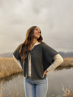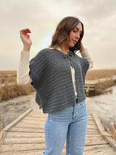 Description: The Cambrie Cropped Cape, designed as a wearable wrap, drapes effortlessly over the shoulder with soft structure and deep arm openings that make it easy to style. A delicate tie at the neckline allows you to wear it closed or loosely open for a relaxed look. Inspired by vintage layering and classic silhouettes, the Cambrie pairs beautifully over a collared shirt, fitted tee or lightweight dress. It brings “grandma-chic” charm into a modern wearable piece. Perfect for transitional seasons and styled for everyday life. A full video tutorial is included to guide you through every step.
