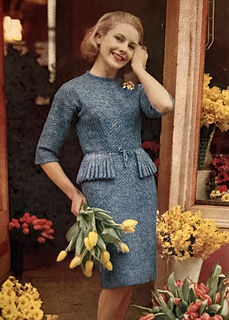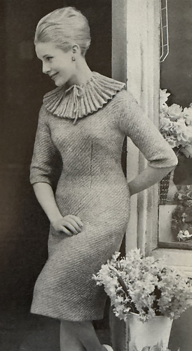 In Double Knitting Nylon it’s a dress that will see service for years and years, and you can wear it three-ways—as a plain sheath, or with the frill as a basque or flattering cartwheel collar