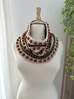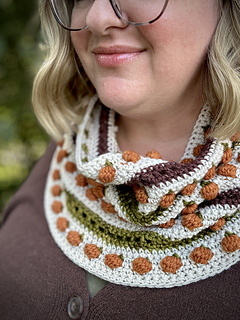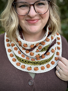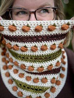 The Great Pumpkin Cowl is a beautifully textured piece inspired by pumpkin patches, corn mazes, hayrides, and everything fall.