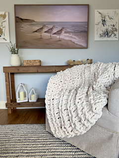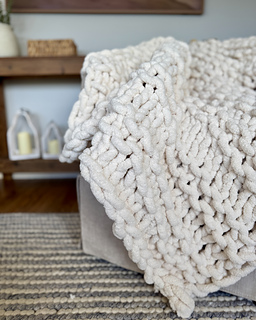 The Hampton Knit Throw features bold, structural welts that give the blanket a distinctive, high-end look—minimalist, textured, and visually striking. The jumbo gauge and simple repeat make this an excellent project for knitters who want maximum impact with minimal complexity.
