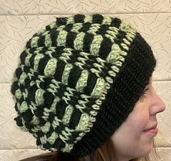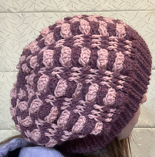 This hat is seamless. The hat band uses one of my favorite crochet ribbing stitches. It can be a little challenging at first, but results in a beautiful stretchy ribbing similar to knitted ribbing. The rest of the hat uses a fun stitch pattern that works up pretty quickly.