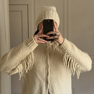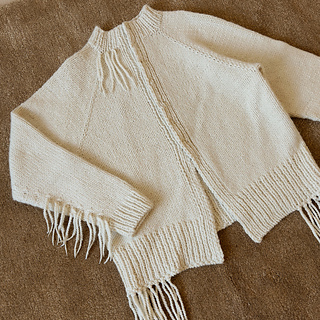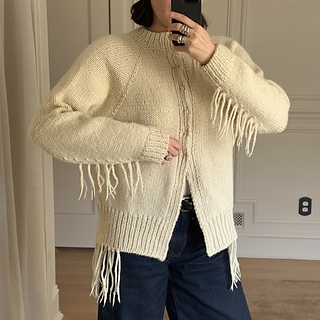 The Lupine Fringe Jacket is a modern, oversized raglan jacket designed for cozy layering and statement style. It’s worked top-down flat and the sleeves are worked in the round. Fringe details bring texture and movement, while clean ribbed edges keep the look polished. The jacket features customizable front closures, inviting you to finish it with snap closures, hooks, or any closure that suits your personal style.