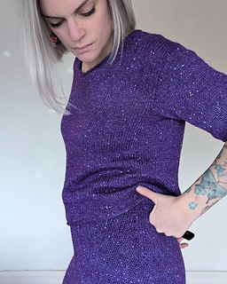The Party Skirt är en kort, tight kjol med slits mitt bak. Kjolen har en snodd i linningen och stickas sömlöst uppifrån och ner. Längd kan enkelt ändras efter önskemål.
