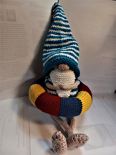 This gnome was great fun to knit. This is “The Swimmer”, second in a series I’m working on. After all, who doesn’t want a gnome for each season, right?! It’s a pretty easy knit, nothing fancy going on. Too hot for that!
