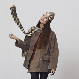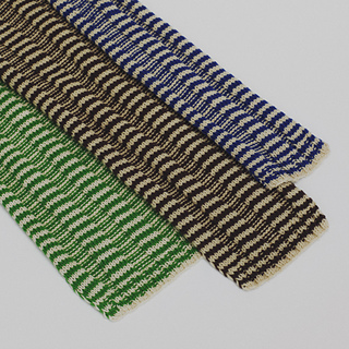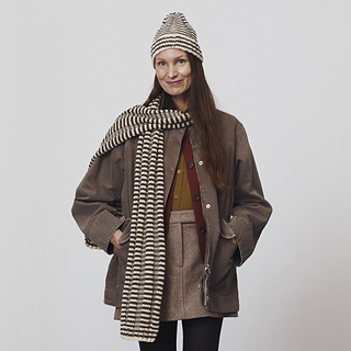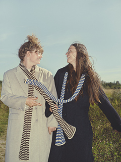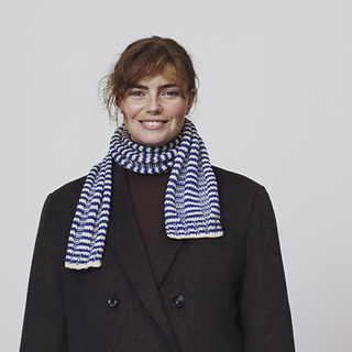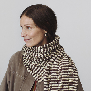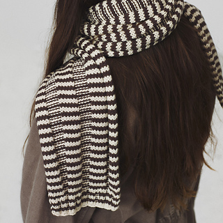 The Thekla Scarf is worked back and forth in 6x6 rib with narrow stripes using two colors.