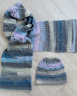 The hat and scarf together used just under 3 balls in shade Sandpiper (26474)