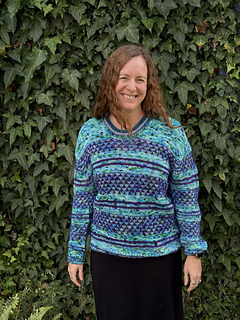 Construction notes: The sweater is worked seamlessly from the top down. It starts by casting on stitches for the back neckline and shaping the shoulders using lifted increases.