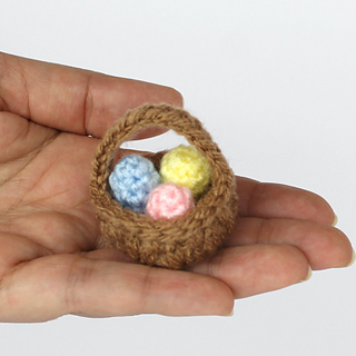This is an intermediate level pattern suitable for crocheters who are confident with basic stitches and frequently used amigurumi techniques (ch, sc, sl st, magic ring, invisible decrease). There is no sewing apart from weaving in the ends on the basket and closing the egg’s bottom. The “basket weave” texture is created by spike stitches - much simpler than it seems!