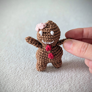 The bow tie and gum drop buttons are crocheted separately, and can be sewn or glued on. And the facial features are embroidered.