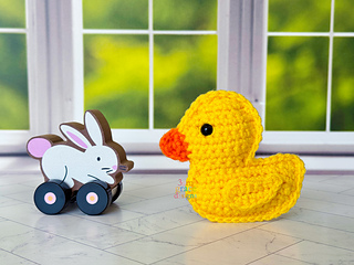 Our finished Tiny Rubber Ducky project is 4” x 4” using the recommended hook size. You are welcome to go up or down a hook size to create a different dimension. You can even hold two pieces of yarn together with a larger hook to create a giant cuddler. The sky is the limit!
