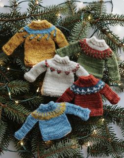 Tiny Sparkle Sweaters is a cheerful collection of five miniature yoke sweaters designed as Christmas-tree ornaments. These tiny knits are quick, satisfying projects that make beautiful use of fingering-weight scraps, simple stranded colorwork, and optional beads for a touch of festive sparkle. Whether you’re decorating a tree, stringing them into playful bunting, or using them as thoughtful handmade gifts, these little sweaters are meant to be fun to knit and easy to personalize.
