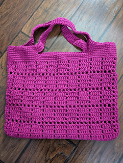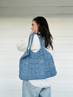 Tote instructions offered in sections, but worked in one piece without fastening off: Tote Base (Rows), Sides + Handles (Rounds).