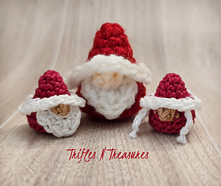 Both little worsted weight versions measure about 2” tall, or make them in thread for tiny little 1” tall earrings or charms (These will definitely make cute stitch markers!) They seriously take only minutes to make! And the gnome can be a boy OR a girl