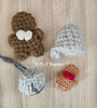 The tiny Polar Express style bell measures in at 1.25” in worsted weight yarn, while the gingerbread man is 2.75” tall, and we have a 1.75” traditional bell with built in clanger Make them in thread for tiny little earrings or charms (yes-I’m thinking stitch markers!) And how cute would they be adorning a wreath?? They seriously take only minutes to make!