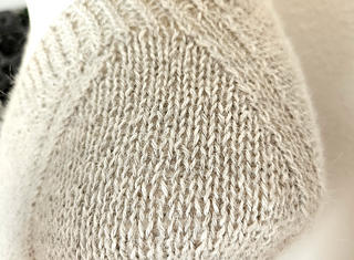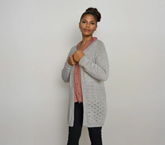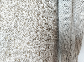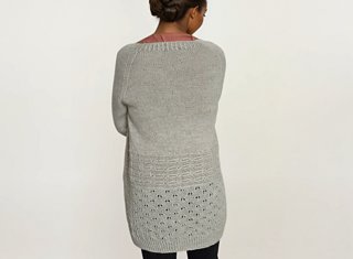 Finally, pick up stitches from the second long side of the border and knit the lower cardigan from top down. Only the underarm stitches that were left on hold are sewn together; otherwise, nothing needs to be sewn.