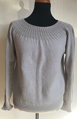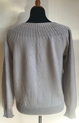 This jumper is knitted from the top down with a round neckline. The knitting pattern is suitable for slightly practised or experienced knitters.