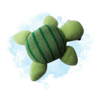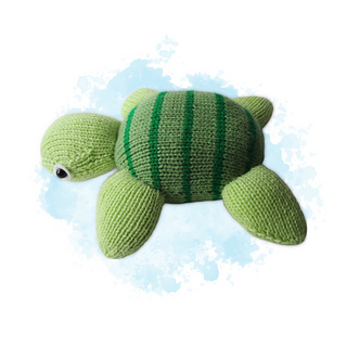 This toy turtle is an easy knit, and a super project if you are new to knitting toys. Techniques used include knitting stripes, and simple increases and decreases for shaping. Designed by Amanda Berry @fluffandfuzz, the turtle is knitted in acrylic DK yarns on single pointed needles (not in the round).