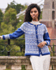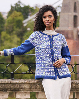 “This stranded colourwork cardigan was inspired by blue china plates - the classic willow pattern design is a favourite of mine,” says Mary Henderson. The body of her cardigan is knitted flat in rows; the sleeves are worked in the round, then joined to the body to work the yoke, which is knitted flat. The neckband, button bands and cuffs are knitted in moss stitch.