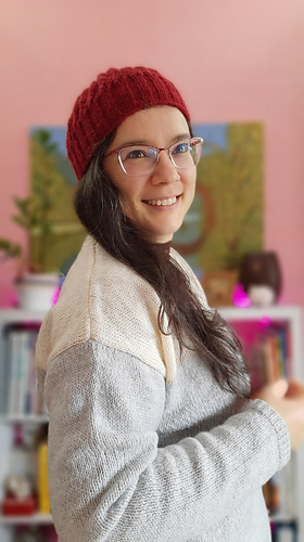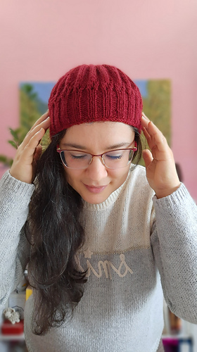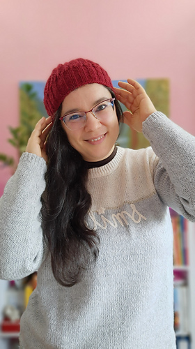 A boina segue uma construção bottom-up, tecida em circular, numa única peça e sem costuras. Tem uma 1ª parte em canelado 2x2 que se ajusta à cabeça e uma 2ª parte adornada por um motivo rendado e depois jersey no topo, tornando esta peça num acessório bem quentinho e indispensável neste Inverno, adequado a todas as ocasiões, em looks mais casuais ou mesmo formais.