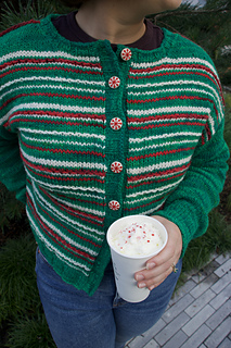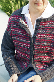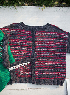 Touchstone Cardigan is an easy fitting drop sleeved sweater with vintage vibes and casual style. The body has a repeated stripe pattern with occasional rows of easy slipped stitch mosaic colorwork for added texture. I designed this cardigan to be an engaging and relatively quick project with Plied Yarn Penn Ave, a heavy worsted woolen spun yarn that knits up beautifully at 4 sts per inch.