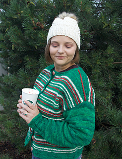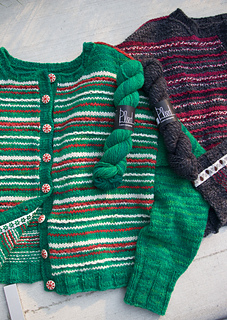 I originally dreamed up this cardigan to be my holiday sweater, using the classic Emerald (MC), Red (CC1) and Natural (CC2) Primary colors of Plied Yarns. Another sample followed in any-time-of-year colors, Black Panther Twist (MC), Wineberry Twist (CC1) and Fuchsia Primary (CC2).