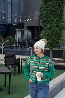 Play with color combinations! The Main Color is used throughout the body and for sleeves and ribbings. Contrast Color 1 is used in smaller amounts than Contrast Color 2, and both are used throughout the body stripe pattern.