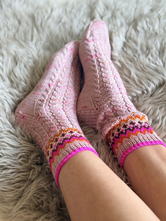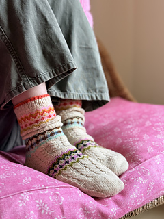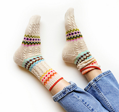Trail Magic Sock Set combines colorwork with cables, and is my love letter to cozy socks for camping, hiking, or otherwise enjoying the outdoors (or the great indoors if you’re more of a homebody!) These socks are knit cuff-down, with multiple options for cable and colorwork placement, allowing you to assemble your own perfect Trail Magic Sock!